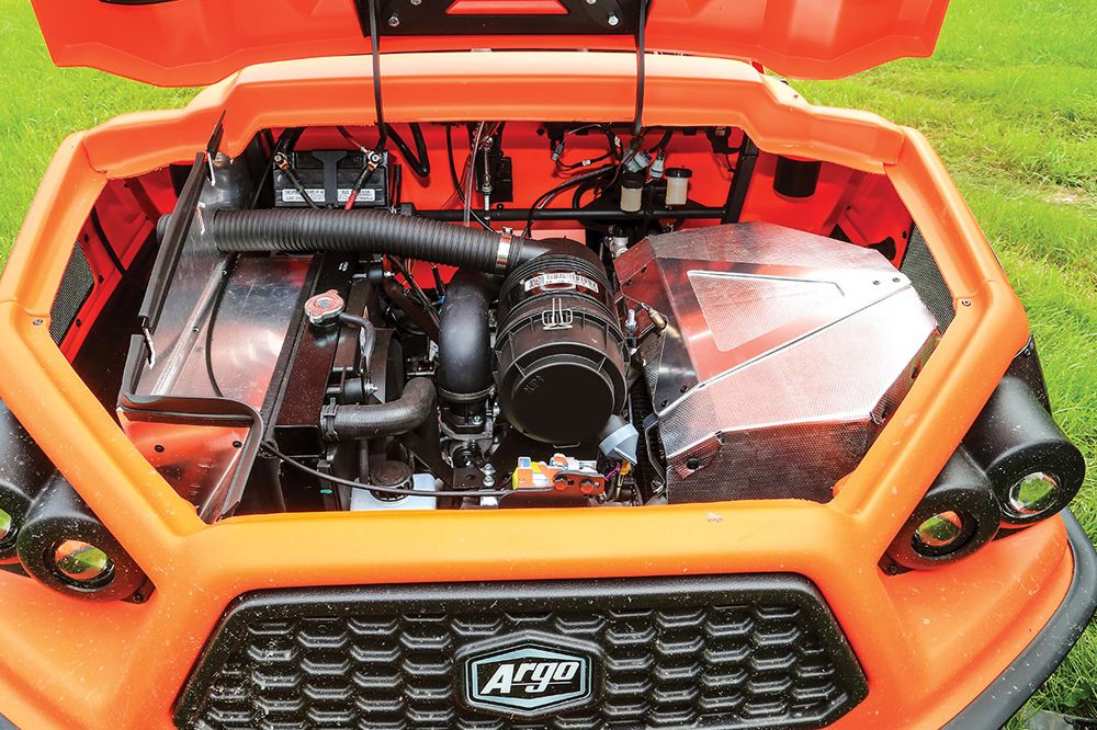 Durabilitatea XTV-urilor ARGO este legendară, iar modelul Aurora 8x8 nu face excepție. Este cel mai avansat și puternic XTV disponibil, având o caroserie complet amfibie. Motorul dublu-cilindric în V cu sistem de injecție electronic (EFI) dezvoltă 30 CP și este capabil să mobilizeze XTV-ul pe orice tip de teren accidentat, în condiții extreme și la altitudini înalte.