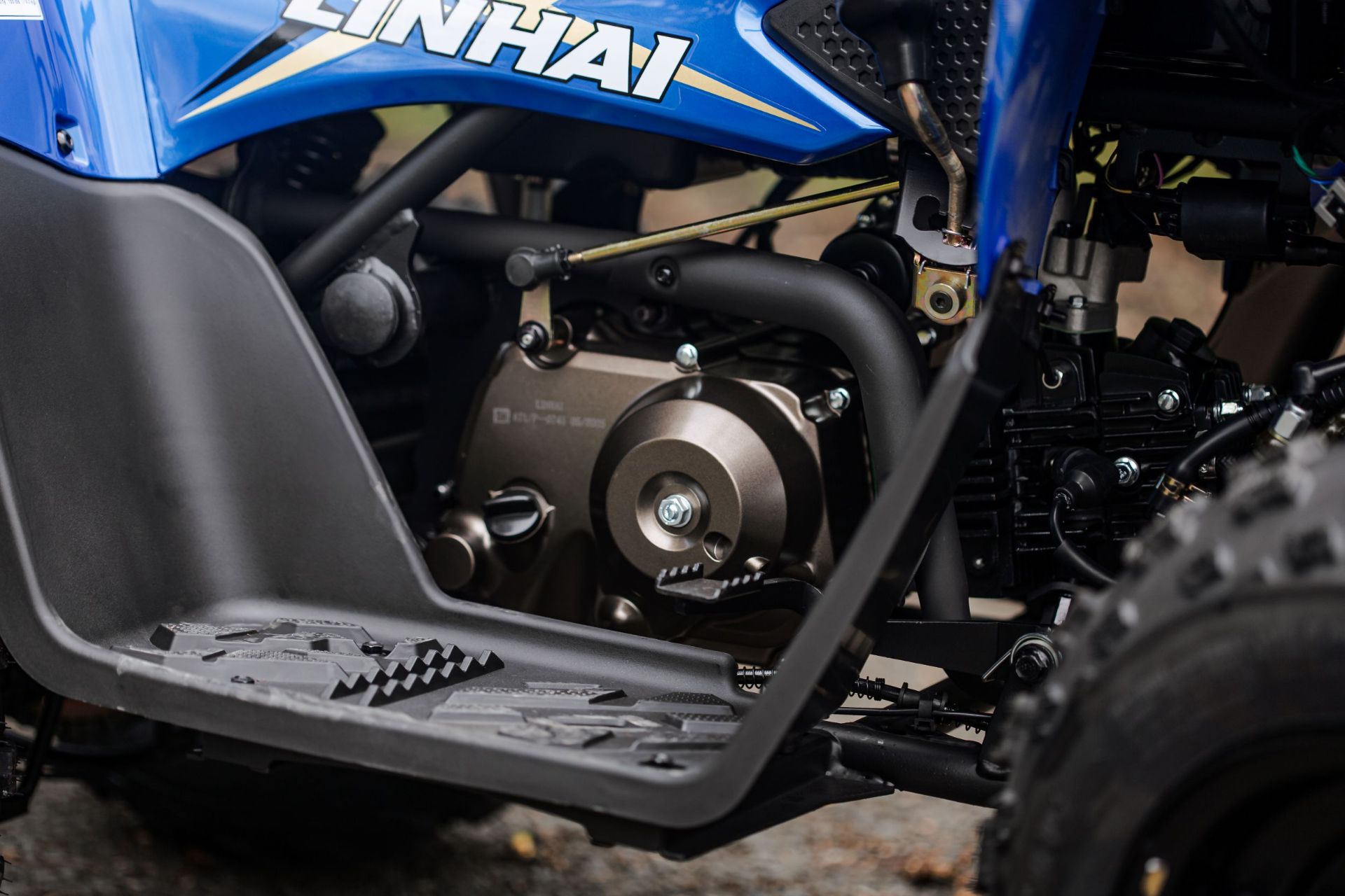 Noul Linhai 110 este alegerea ideală pentru juniorii pasionați de senzații tari. Este echipat cu un motor de 6.4 CP și transmisie automată, care asigură o deplasare lină și sigură în orice situație. Roțile din spate primesc puterea uniform printr-un lanț fiabil, oferind tracțiune stabilă pe teren accidentat. Suspensia față, cu basculă triunghiulară și arcuri progresive, și amortizorul central reglabil de pe spate garantează confort și control, astfel încât copilul să se bucure de aventură în siguranță.