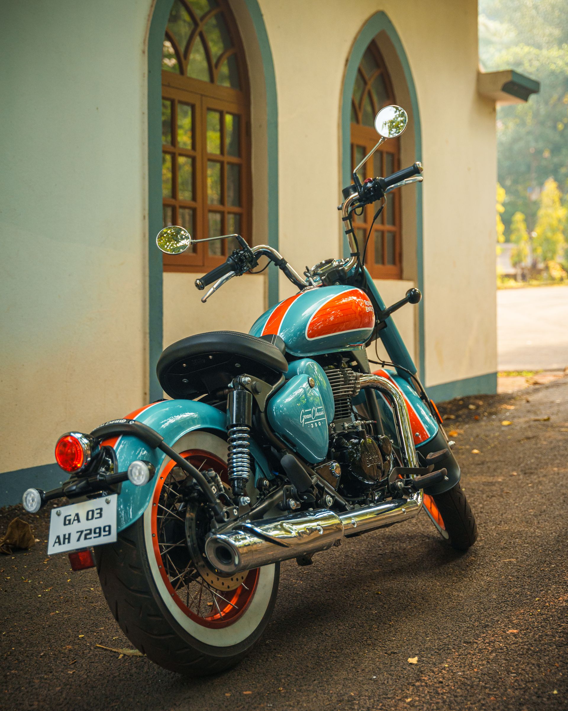Inspirat de creațiile îndrăznețe și minimaliste ale constructorilor de modele custom din Goa, Goan Classic 350 preia spiritul unui bobber și îl îmbogățește cu aripi scurtate, anvelope cu flanc alb și o explozie caleidoscopică de culori. Acesta este modelul Classic așa cum nu l-ai mai văzut până acum.
