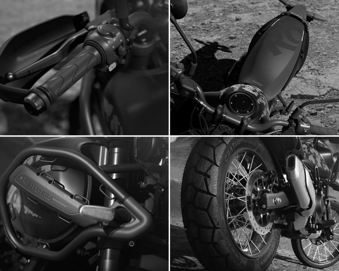 Unul dintre punctele forte ale noului Himalayan Rally este configurația sa complet echipată din fabrică. Riderii pot avea un Himalayan care vine gata dotat cu accesorii de aventură atent selecționate. Cu apărători de mâini Black Rally, șa Black Rally pentru confort pe distanțe lungi și apărătoare de noroi Rally pentru traseele accidentate, Himalayan Rally vine pregătit în totalitate pentru explorare.